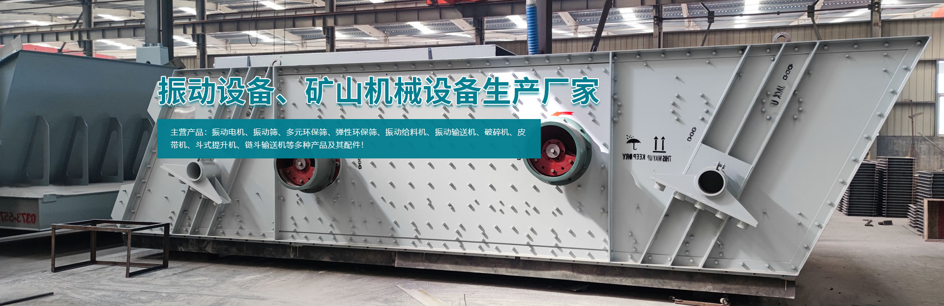 - 主要產(chǎn)品有系列振動電機、振動篩、多元環(huán)保篩、彈性環(huán)保篩、振動給料機、振動輸送機、破碎機、皮帶機、斗式提升機、鏈斗輸送機等多種產(chǎn)品